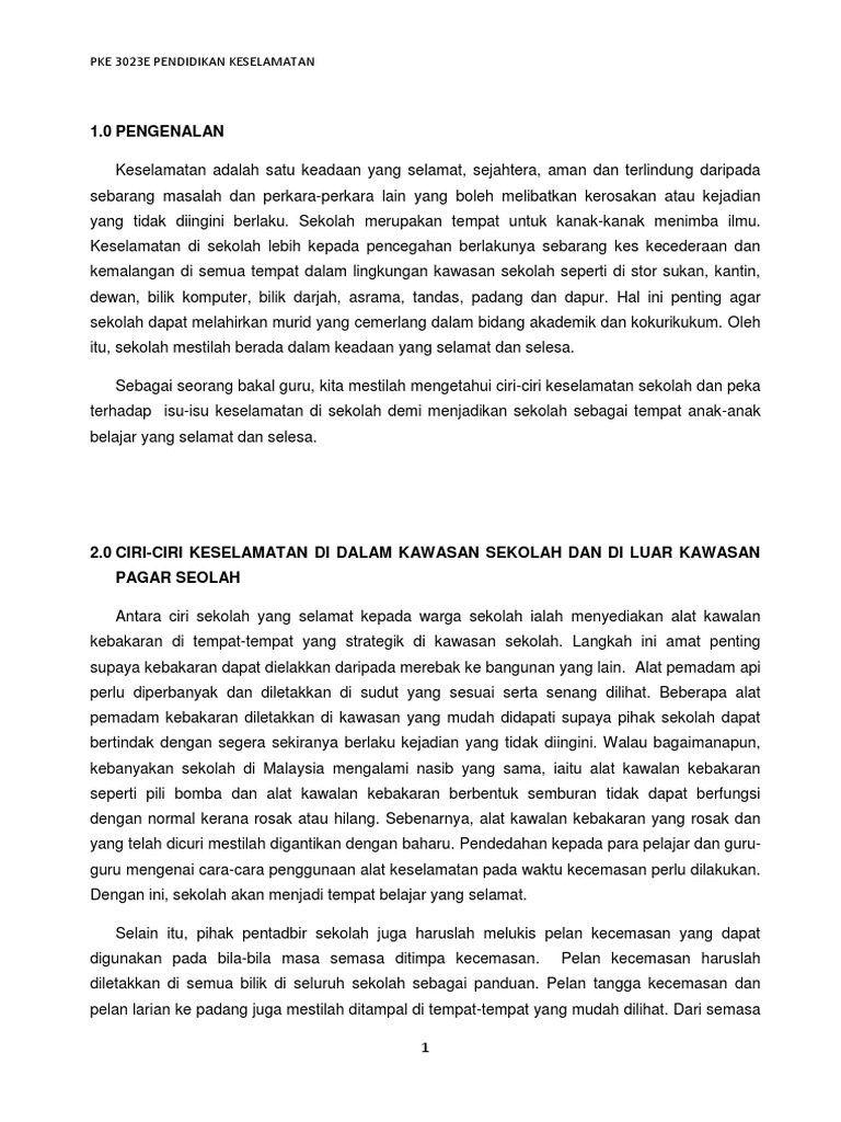 Esei Ciri Ciri Keselamatan Di Sekolah Pdf